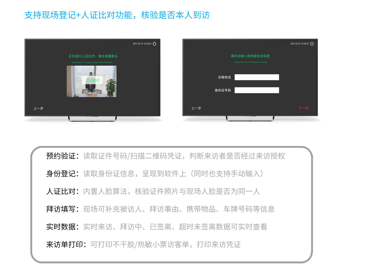 互联网型访客系统。首创性的PAD来访登记模式,适用于现代型、科技型企业前台,实现自助到访签到与验证。可支持外接身份证阅读器及不干胶来访单打印设备